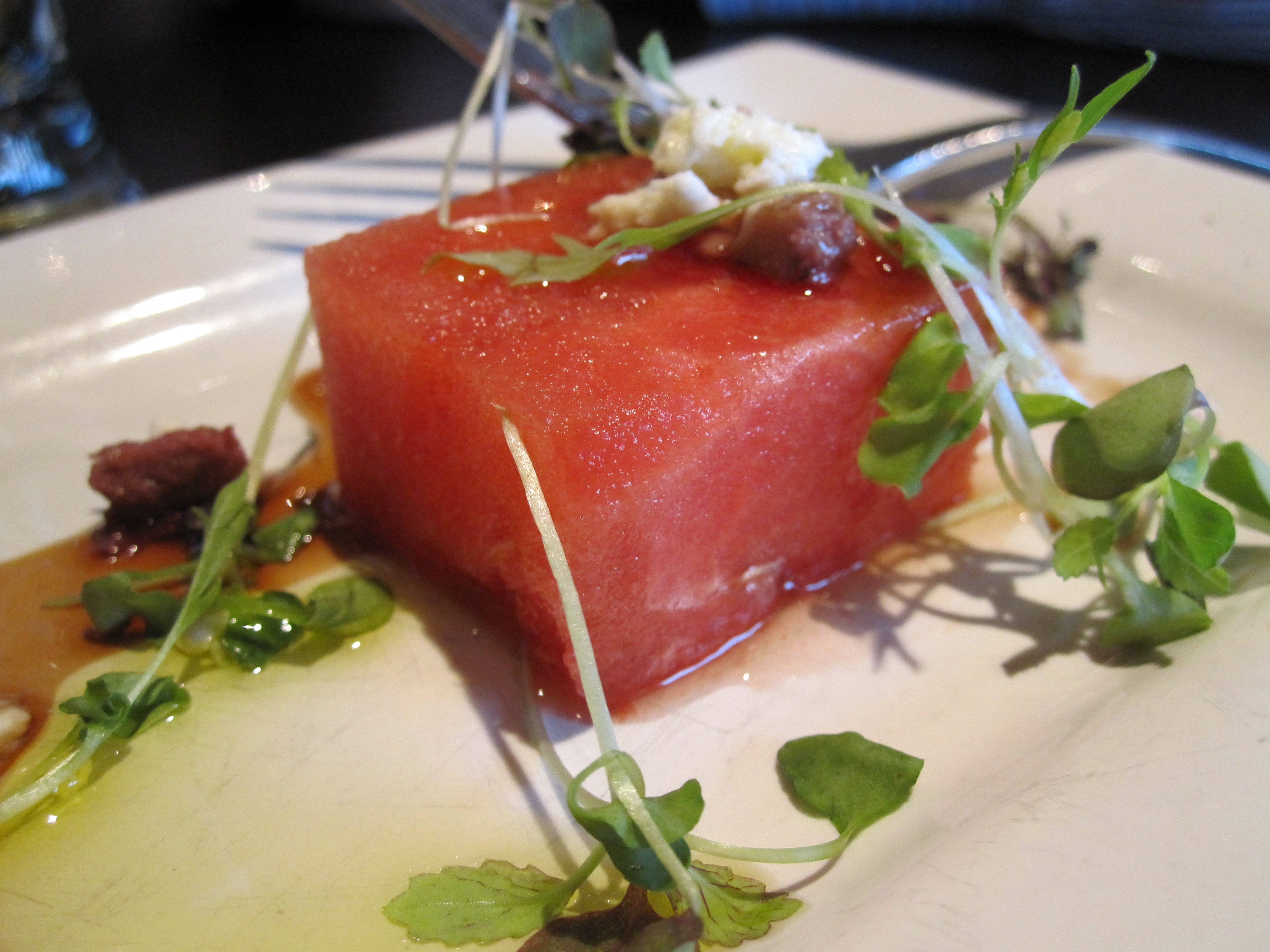 This “salad” was incredibly light and fresh.  I will definitely be making this at home, as it consisted of: watermelon, feta cheese, kalamata olives, olive oil, and balsamic vinegar.  The greens they included were hardly necessary, in my opinion.